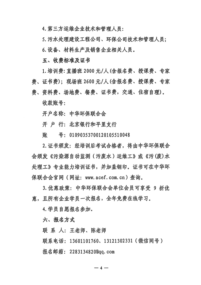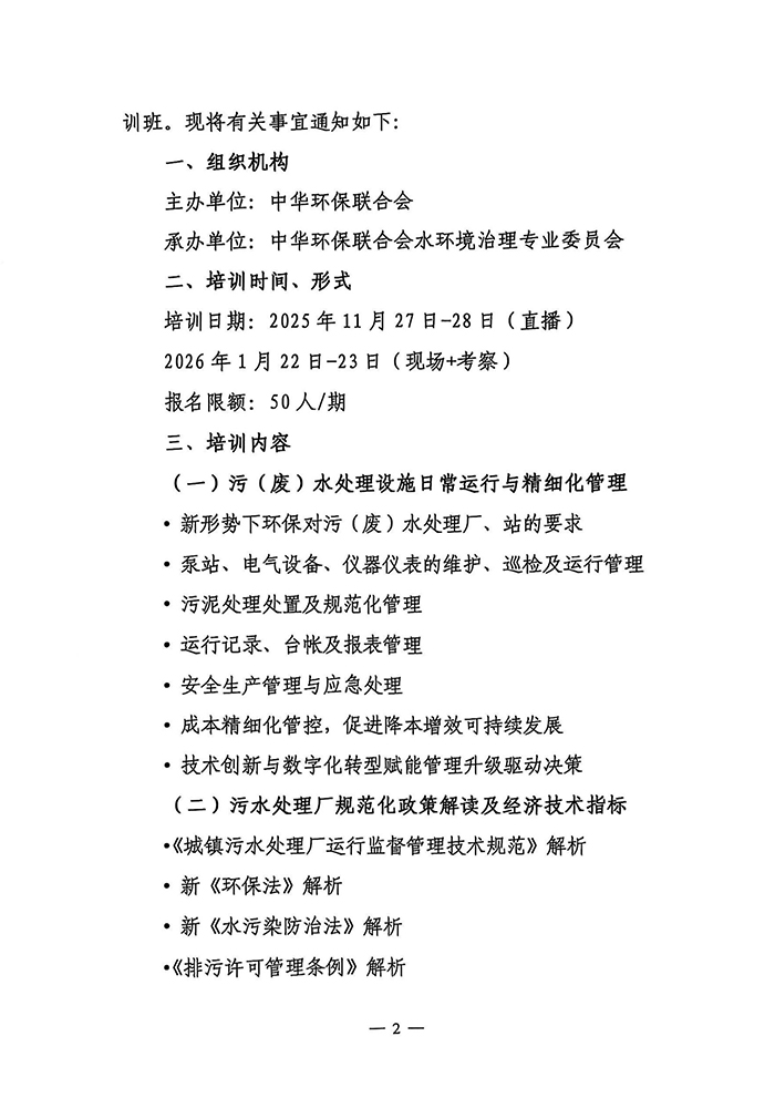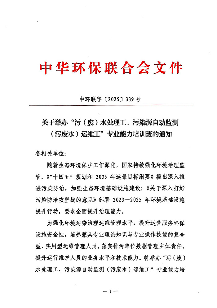 培训通知 | 关于举办“污(废)水处理工、污染源自动监测(污废水)运维工”专业能力培训班的通知