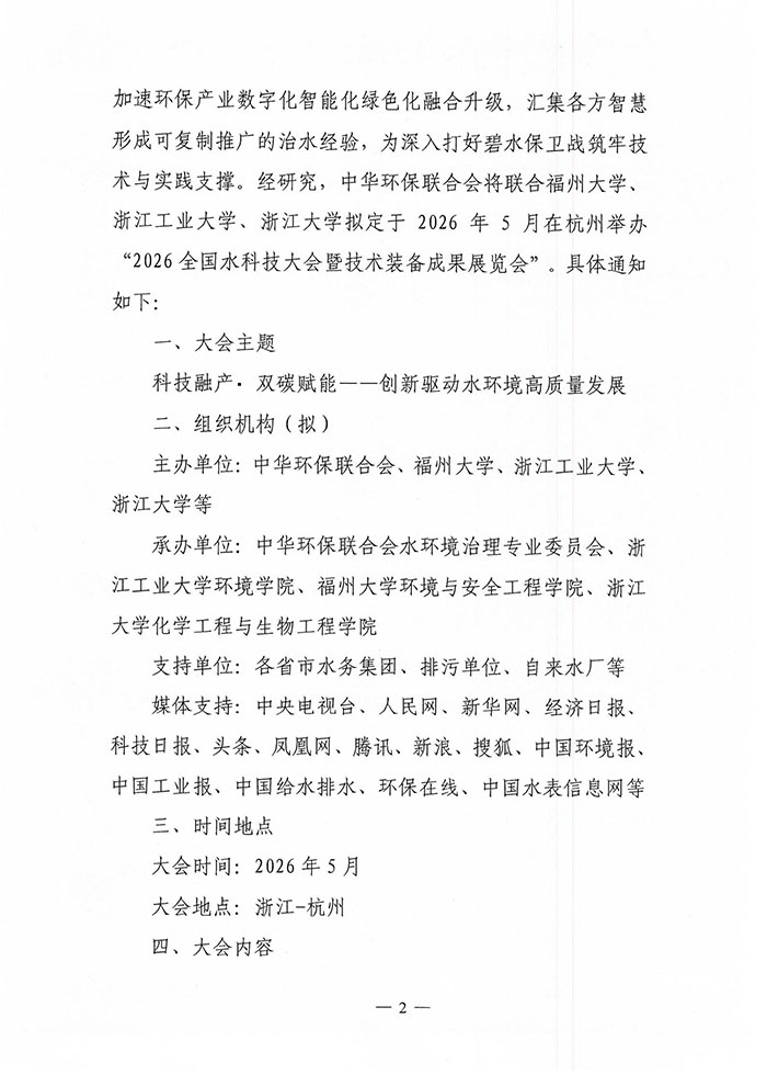 中华环保联合会关于举办“2026全国水科技大会暨技术装备成果展览会”的预通知