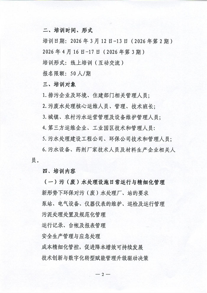 3、4月培训通知 | 关于举办“污(废)水处理、污染源自动监测”运维管理人员培训班的通知