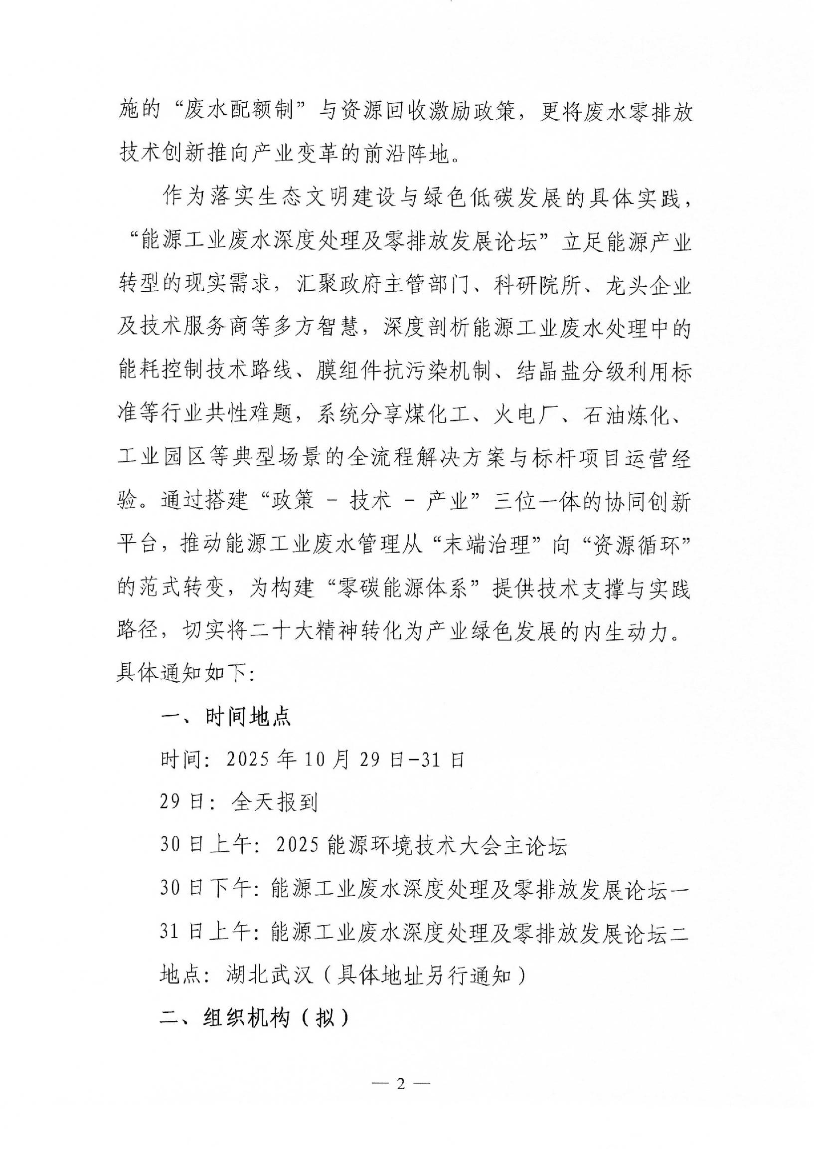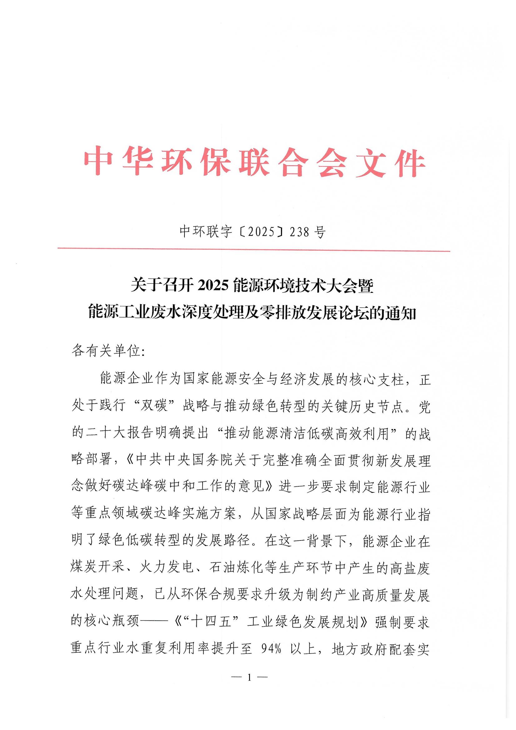 关于召开2025能源环境技术大会暨能源工业废水深度处理及零排放发展论坛的通知