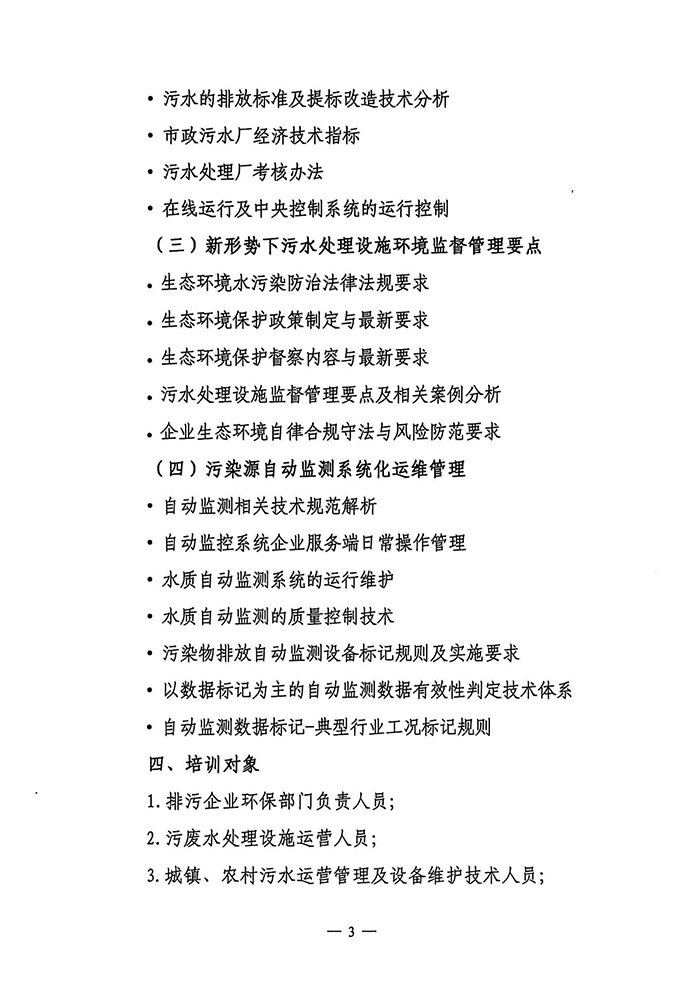 培训通知 | 关于举办“污(废)水处理工、污染源自动监测(污废水)运维工”专业能力培训班的通知
