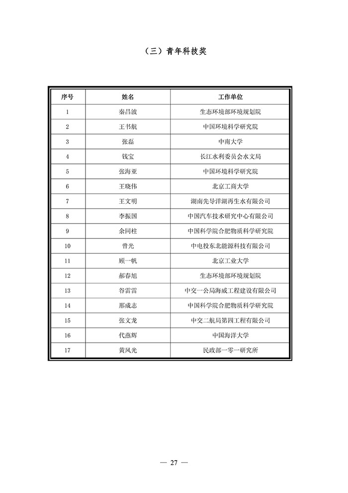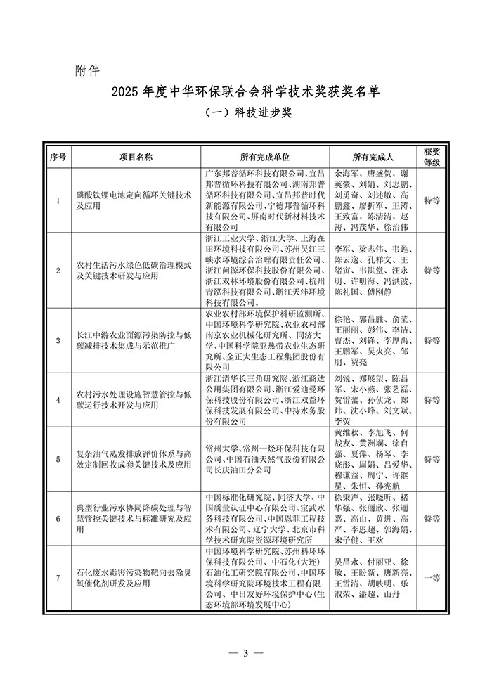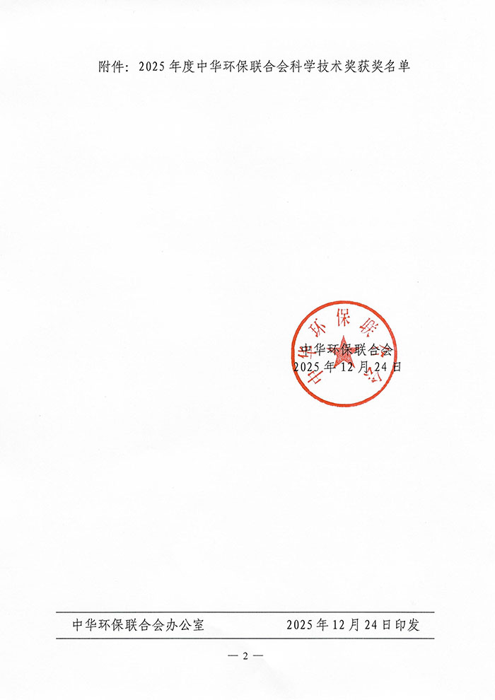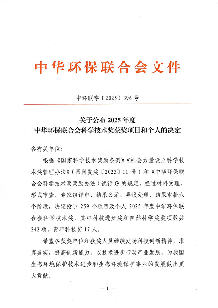 关于公布2025年度中华环保联合会科学技术奖获奖项目和个人的决定