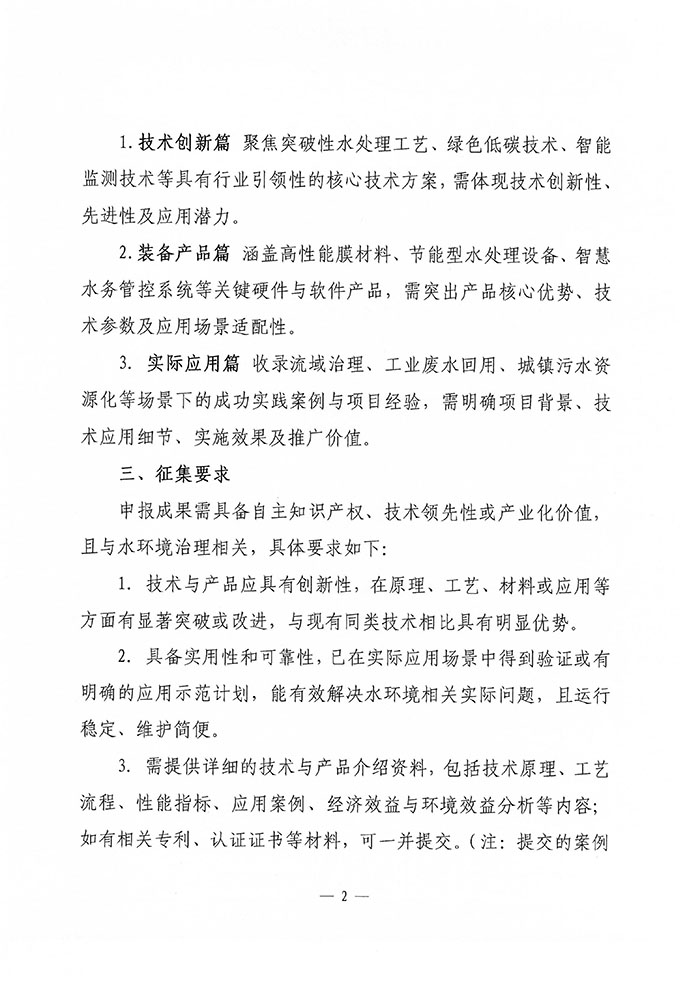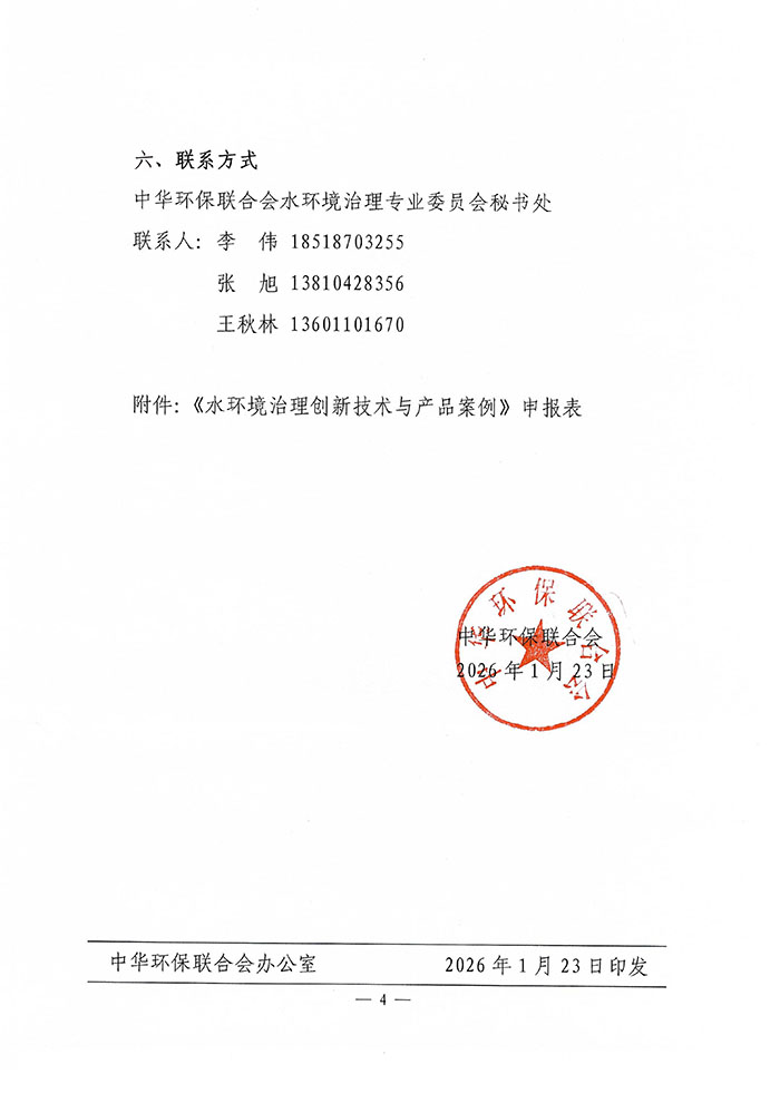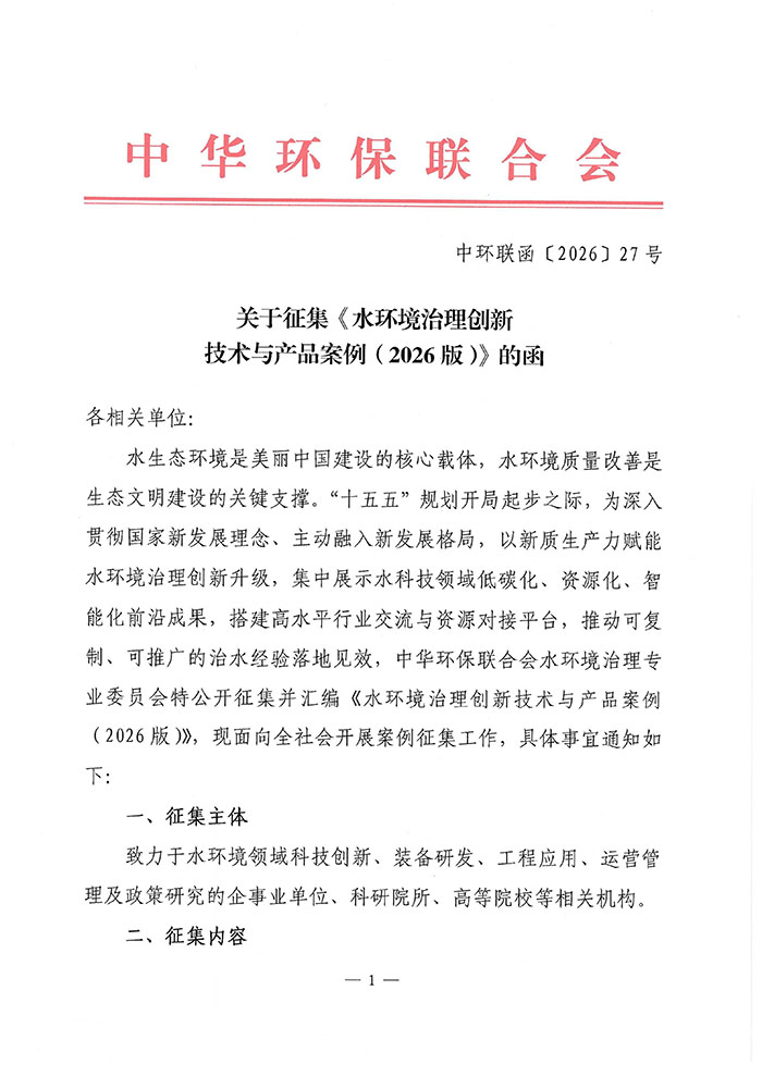 中华环保联合会关于征集《水环境治理创新技术与产品案例(2026版)》的函