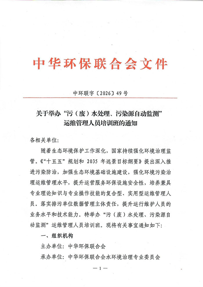 3、4月培训通知 | 关于举办“污(废)水处理、污染源自动监测”运维管理人员培训班的通知